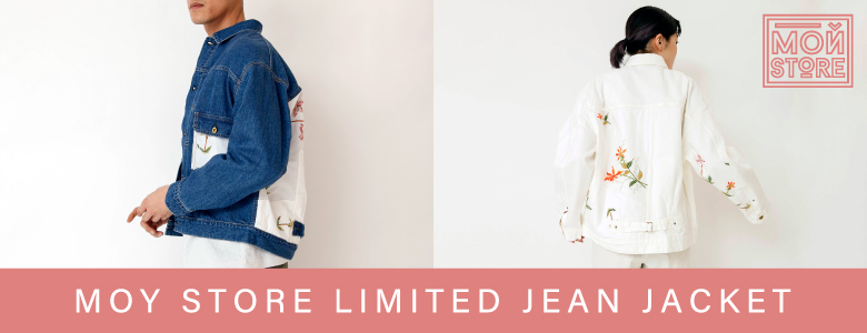 JOHNBULLの旗艦店、表参道店に併設するMOY STORE。JOHNBULLのプレスでもあるマリアがディレクターを務める、コンセプトストアです。今回は、MOY STORE限定のGジャンがリリースしました。JONBULLが誇るモノづくりのマインドと、マリアの想いが見事に一つになったプロダクトが完成しました。繊細なマリアの感性が、本来重厚感のあるGジャンに、エンブロイダリー(刺繍)というアプローチで唯一無二のプロダクトに。是非ともご覧下さい。