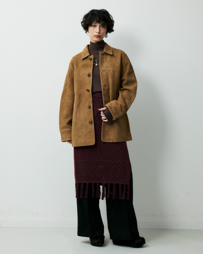 素材やカラーで秋の深まりを感じられる組み合わせでシックで大人っぽいスタイルに。