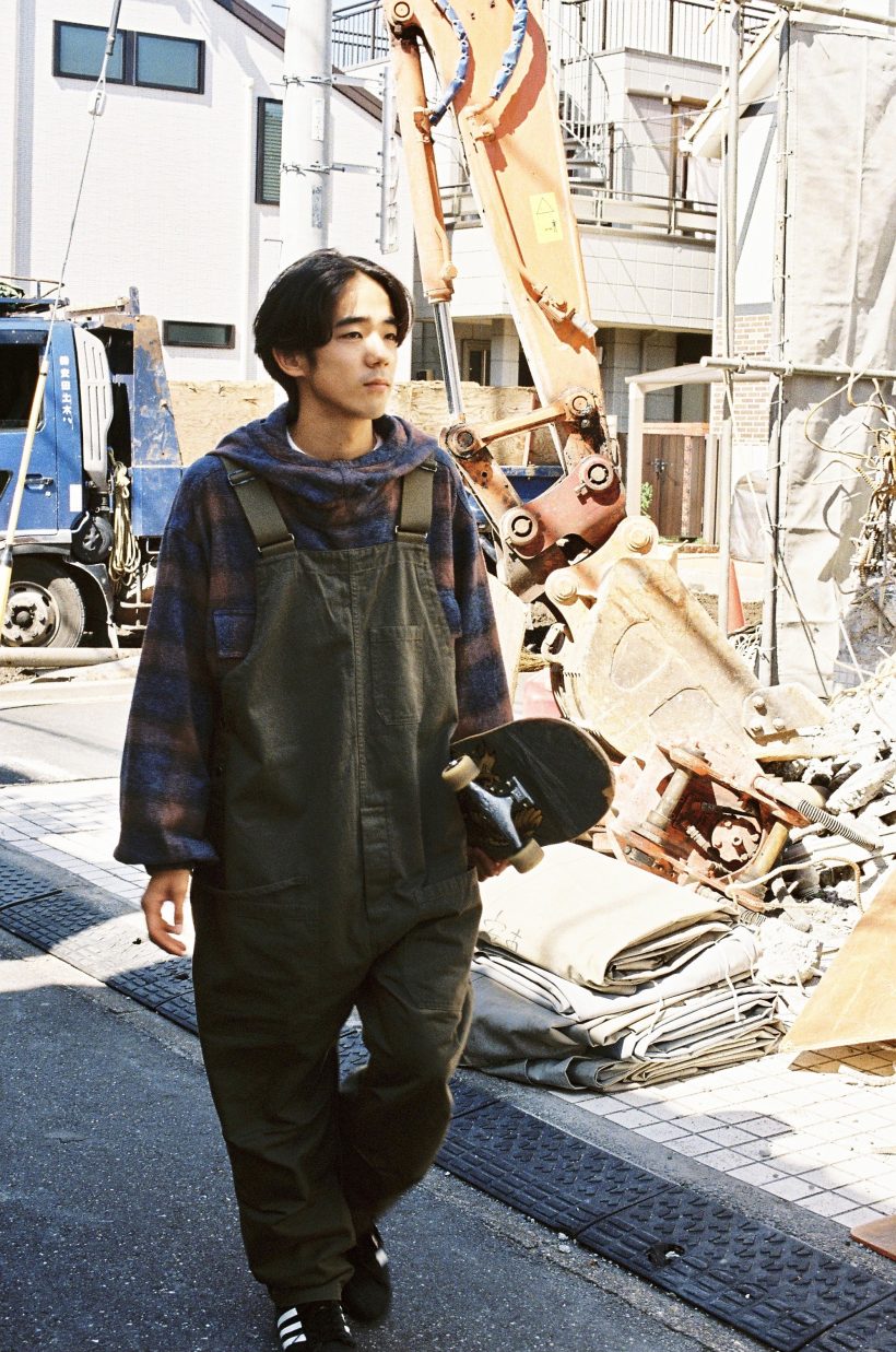 kozakana :『生地も柔らかくて動きやすいオーバーオールは、チェックのサルベージパーカーと合わせたこれからの季節に大活躍の予感。動きやすさにはこだわりがあって、自分自身スケーターだったりするので、いかにオシャレで動きやすいかをボトムスに求めます。そんな思いが実現した一本です。』