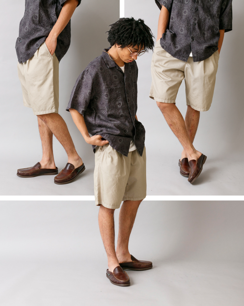 【CHILLTECH】という中心が空洞の中空糸を使用した機能素材生地のイージーショートパンツ。遮熱効果があり、外気より少し低い温度を維持する機能があります。また、接触冷感、吸水性にも優れ、軽量な生地感のため汗ばむ時期に最適です。高機能ながらシャンブレー調の風合いの生地で、カジュアルな着こなしにも馴染むアイテムとなっております。ウエストはゴム紐のイージー仕様で、ON/OFF問わず幅広いシーンで重宝します。ショーツに抵抗のある方は同じ生地を使用しているフルレングスタイプがおすすめです。
