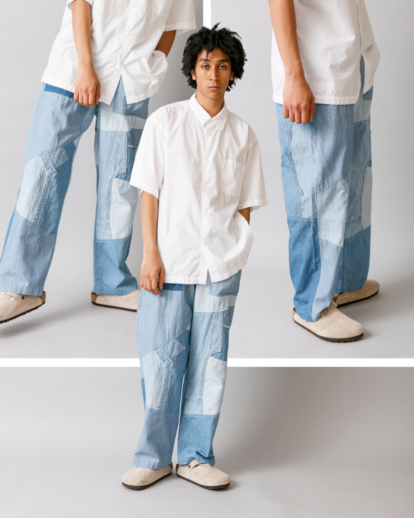 ご好評頂いている【rebear by Johnbull】のパッチワークパンツに春夏向けのモデルが登場。従来のシリーズに比べウエストからヒップにかけてボリュームを抑えてすっきりとしたシルエットとなっており、パッチワーク生地にはシャツや軽量なものを使用している為、これからの季節にも穿きやすいボトムスです。サスティナブルで地球に優しい新しい現代ファッションが楽しめる注目のアイテムです。同じ物は1点と存在しない所も多くのファンがいる魅力の一つ。