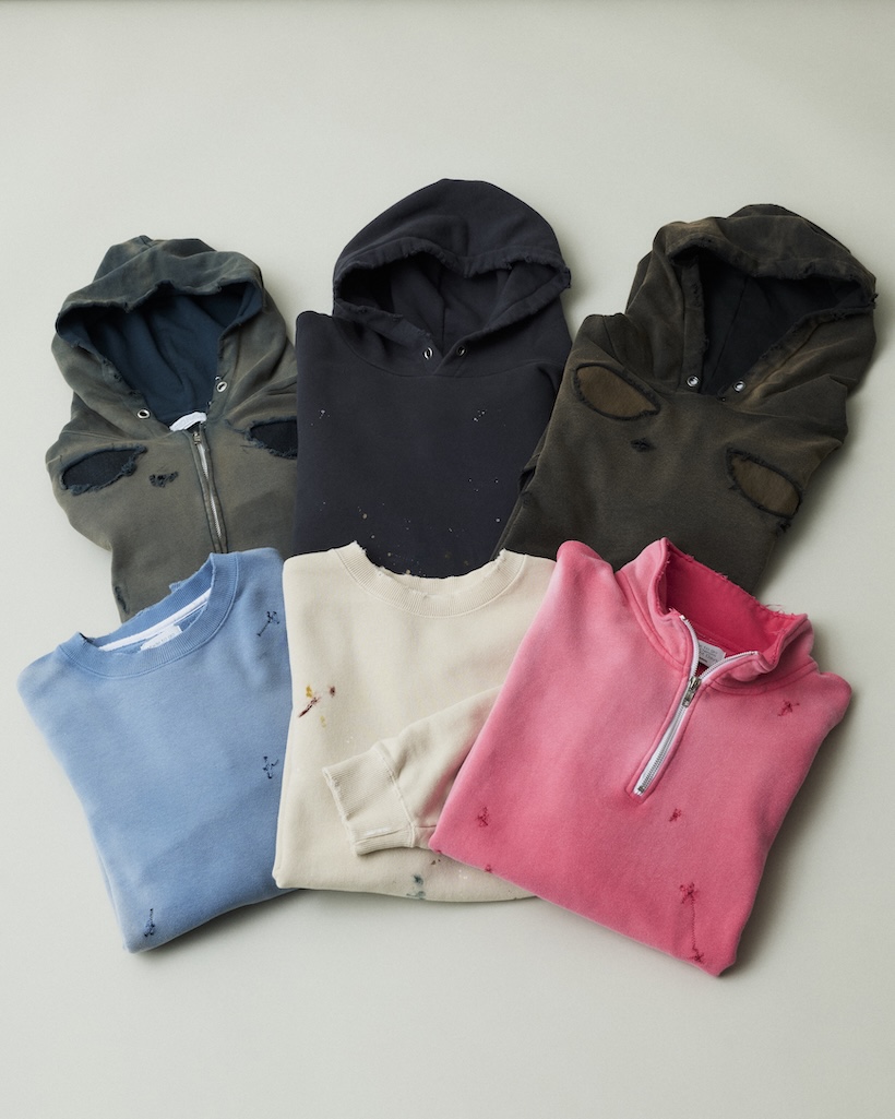 時代を読む感性と高い加工技術の開発、またその組み合わせによって高品質で均質な加工の提供を行う岡山県の加工メーカー「WELLS(ウェルズ)」 と「JOHNBULL」がタッグを組み生まれたブランド【ATELLIER WELLS BY JOHNBULL】から初のスウェットアイテムが2型リリース予定。オーセンティックなクルーネックとフーディーの展開で、一番のポイントは誰が着てもファッションとして成立ように位置や色、分量まで計算されたペイント加工。