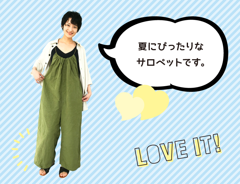 巾着のようにぎゅっとしぼったデザインが可愛いドローストリングサロペット(ZP157)がオススメです。暑くなったらノースリーブに合わせて、シンプル&ヘルシーなコーディネートでキメたいです!