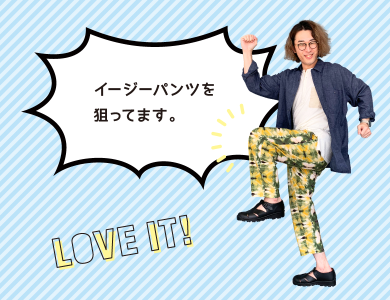 暑い季節になると色柄モノに対する欲求が出てきて、今は派手柄のパターンイージーパンツ(21420)が欲しいです。ウエストがゴムで緩めのシルエットなので、おうち時間にもラフに着られて良さそうです!