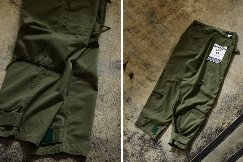 70年代のアメリカ陸軍で使用されていたヘリクルーパンツをベースにアレンジされたまっすぐ落ち感のあるストレートシルエットを採用したUS ARMY HELICREW TROUSERS。日常で着用しやすい、一定の間隔で格子状に太い糸を入れることで布を破れにくく補強したリップストップ生地(コットン)を使用。両腿のポケットには両サイドにファスナーをつけた二重構造に。