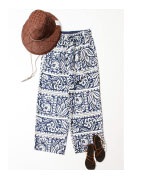スペインの伝統的なマヨルカ柄を連想させるJOHNBULLオリジナルプリントを施した華やかな柄が目を惹くイージーパンツ。光沢感があり、ストンと落ちるワイドストレートシルエットなのでリラックススタイルも上品にまとまります。