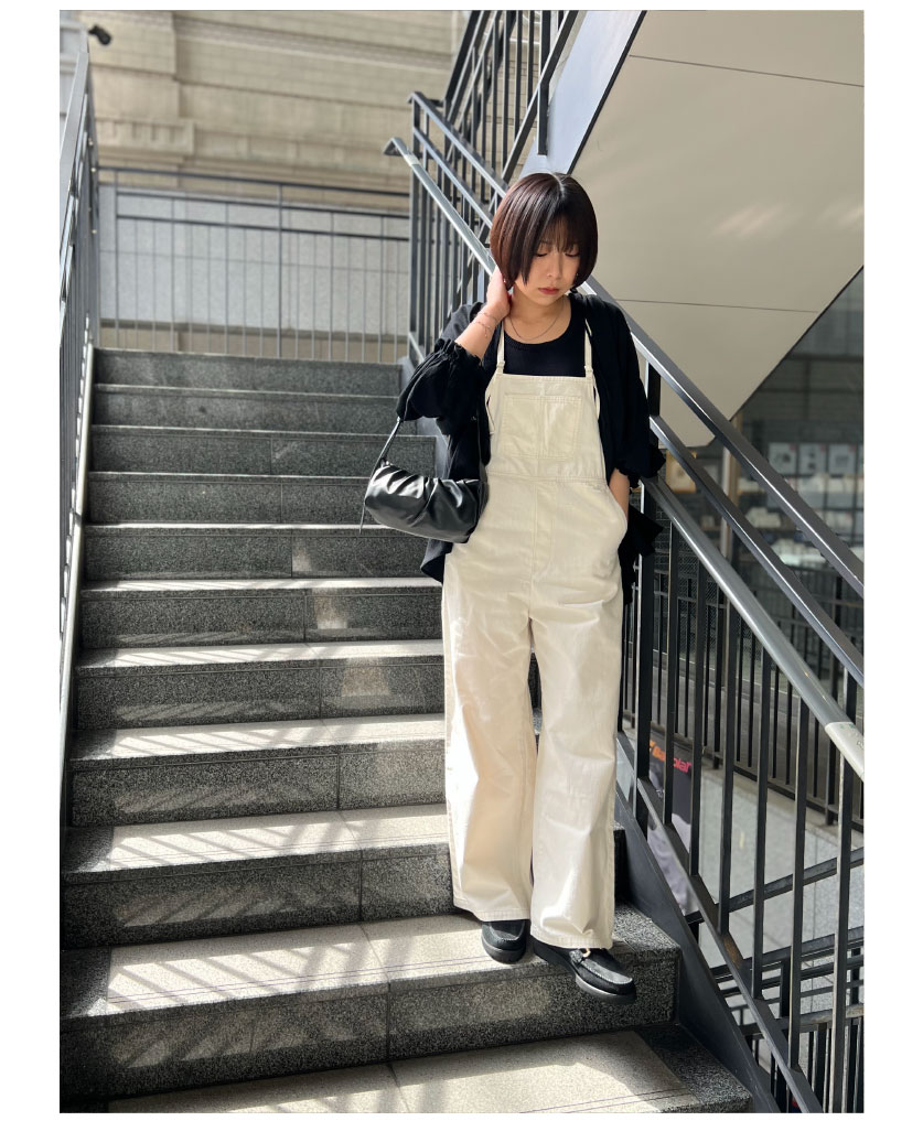 ドライタッチで肌触り良く、落ち感もある素材感で夏でも快適な着心地のゆったりサロペット。ウエスト部分のドローコードでお好みのシルエットにアレンジできる優れもの。