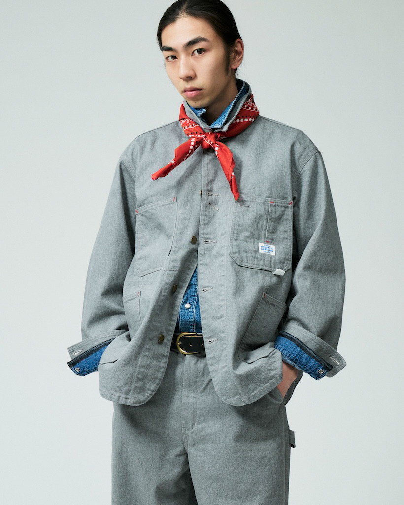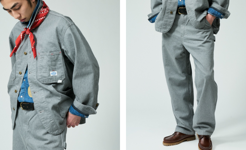直営店舗限定のグレーデニムをセットアップでスタイリング。ワークウェアとしてのタフでカジュアルな使い勝手はもちろんのこと、これからの新生活に向けた季節、卒業式・入学式・入社式などフォーマルな場でも通用するアイテムです。