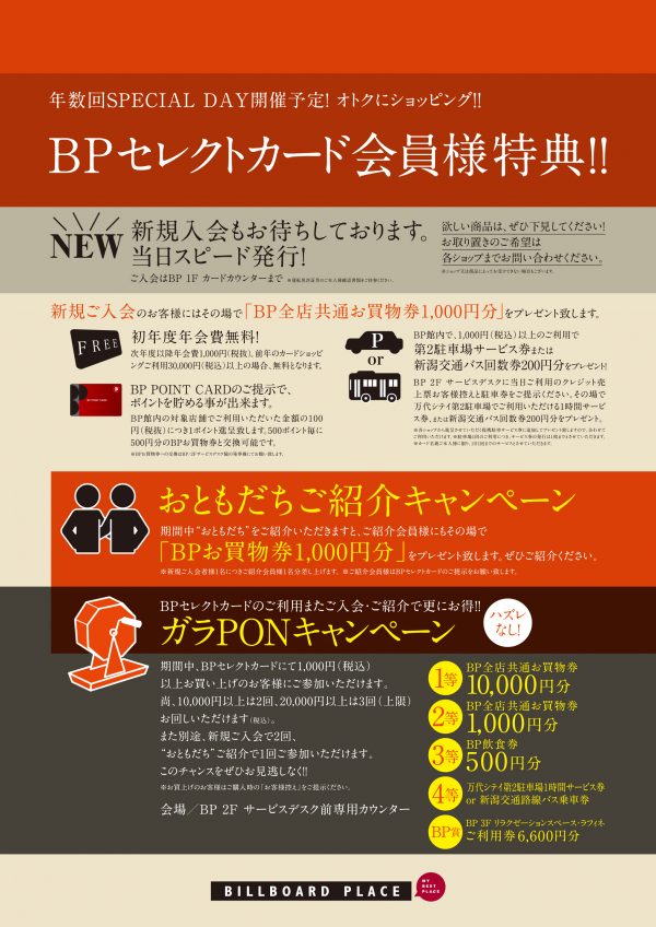 【新潟店】BPセレクトカード10%OFF -スペシャル3DAYS-