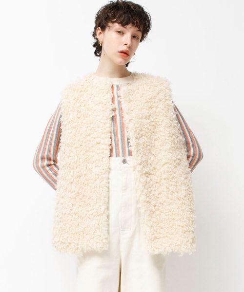 スタンダードプードルを思わせるボリューム感のあるボアベスト。