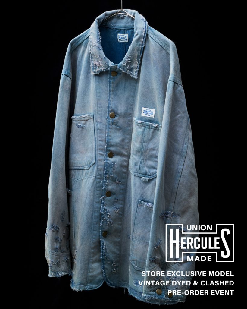 「UNION HERCULES MADE」は、ヴィンテージワークウェアブランド「HERCULES(ヘラクレス)」を、 岡山の高い加工技術と職人の手によるヴィンテージ風ダメージ加工を施しアップデートしたデニムブランド。
