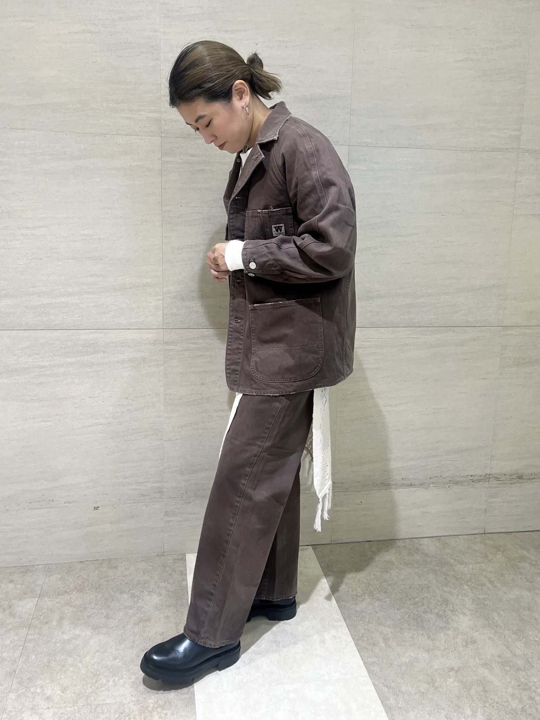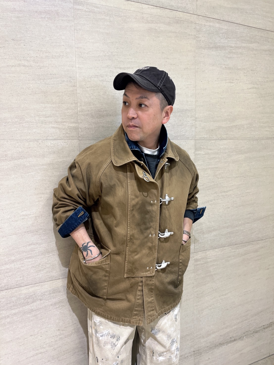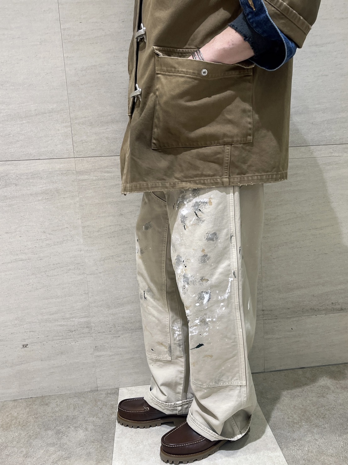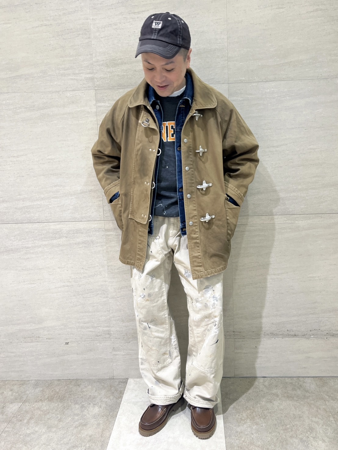 ファイヤーマンジャケットにダブルニーパンツでヴィンテージ感満載のスタイリングに。