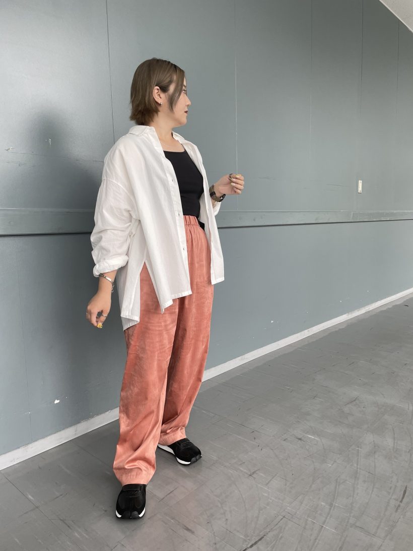 こちらユニセックスアイテムで、今回は女性スタッフに着用してもらいました。