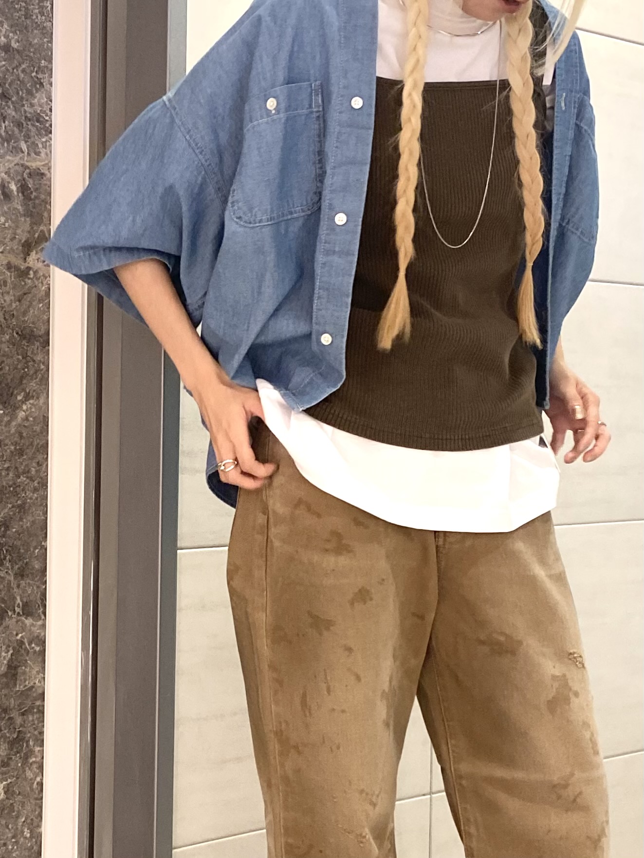 そして、この時期に夏らしいブルーのデニムシャツもオススメです。