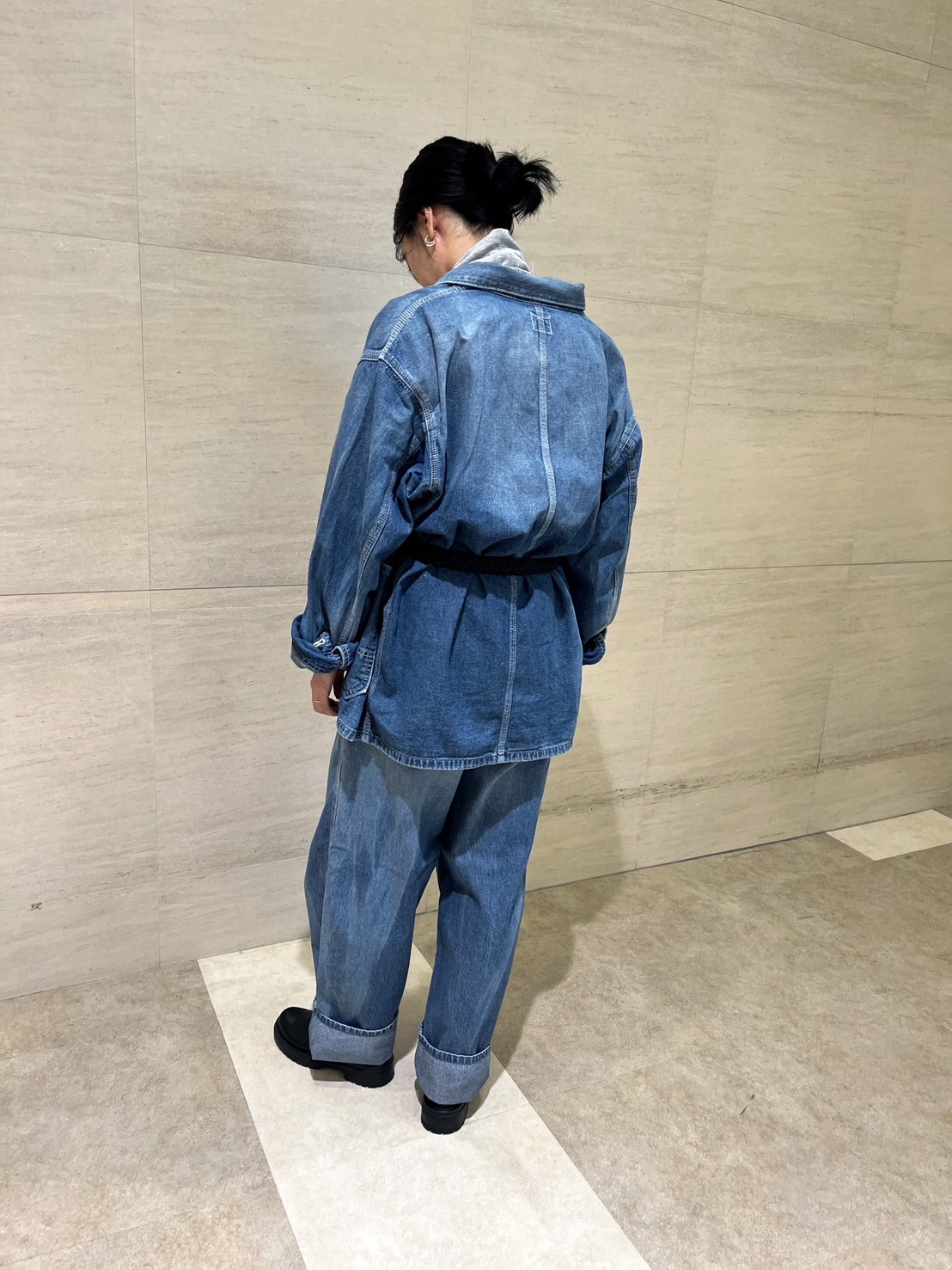 ここではあえてデニムジャケットをインナー使いして遊びをきかせてます。