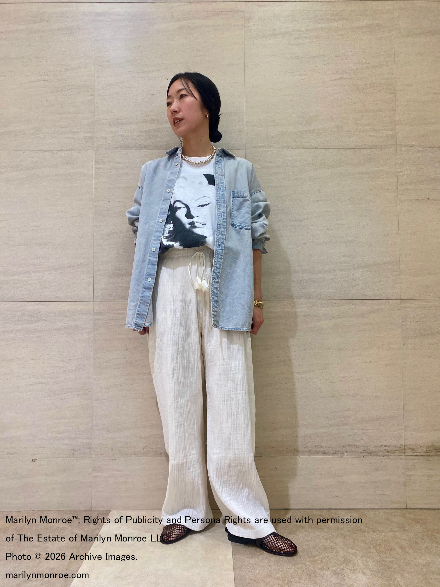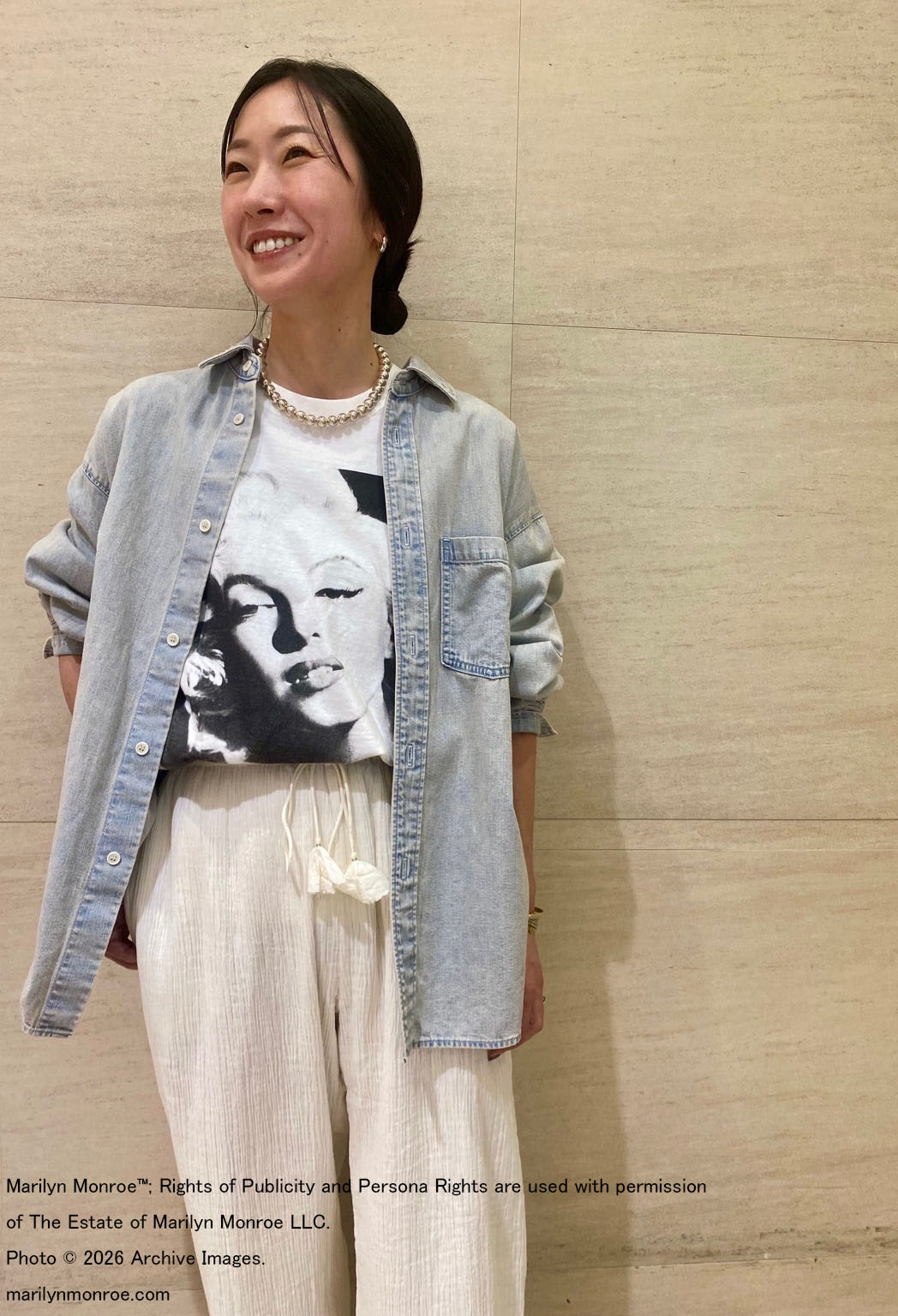 羽織からちらっと見せる『マリリン・モンロー』は存在感抜群ながら、モノクロでコーデに馴染んでくれます。