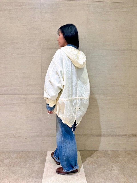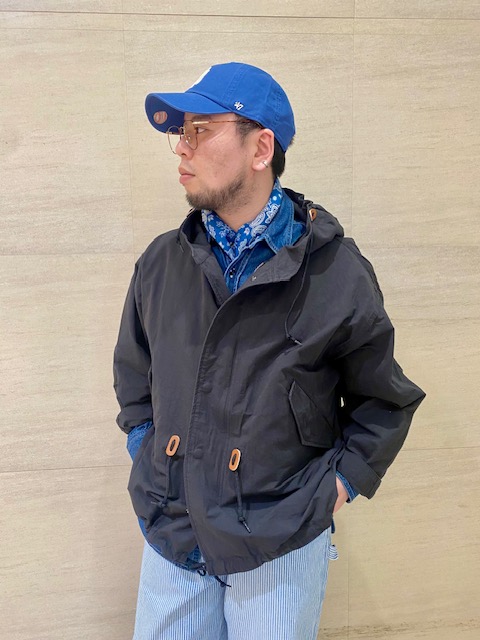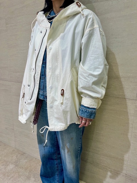 ミリタリーの佇まい、雰囲気はそのままに、さらっと羽織りやすいオーバーシルエットになっておりまだ寒い日は中にスウェットやデニムジャケットなど厚手のものも着用可能です。