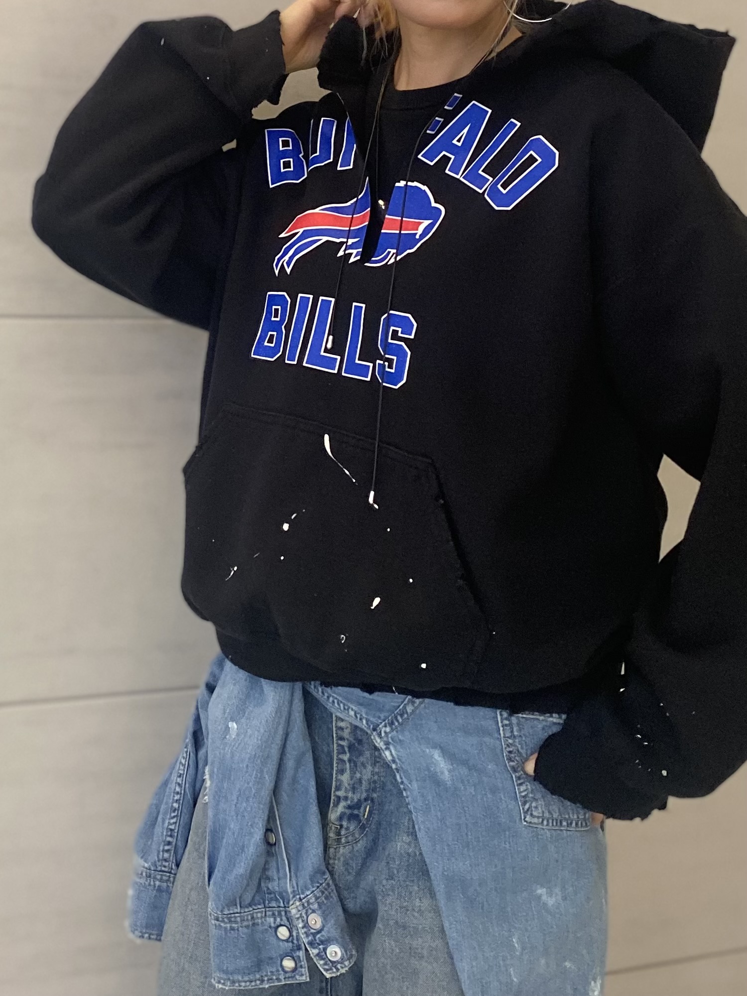 こちらも、袖口やフロント部分など、随所にカットオフ加工を施しております。