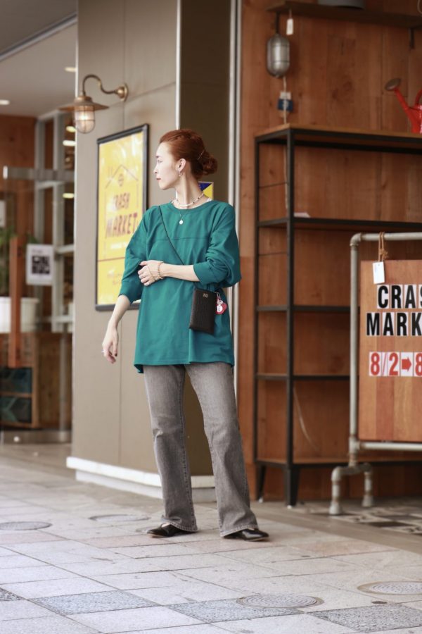 ブーツカットパンツは今回レイヤード風のトップスとシンプルにスタイリングしてみました。