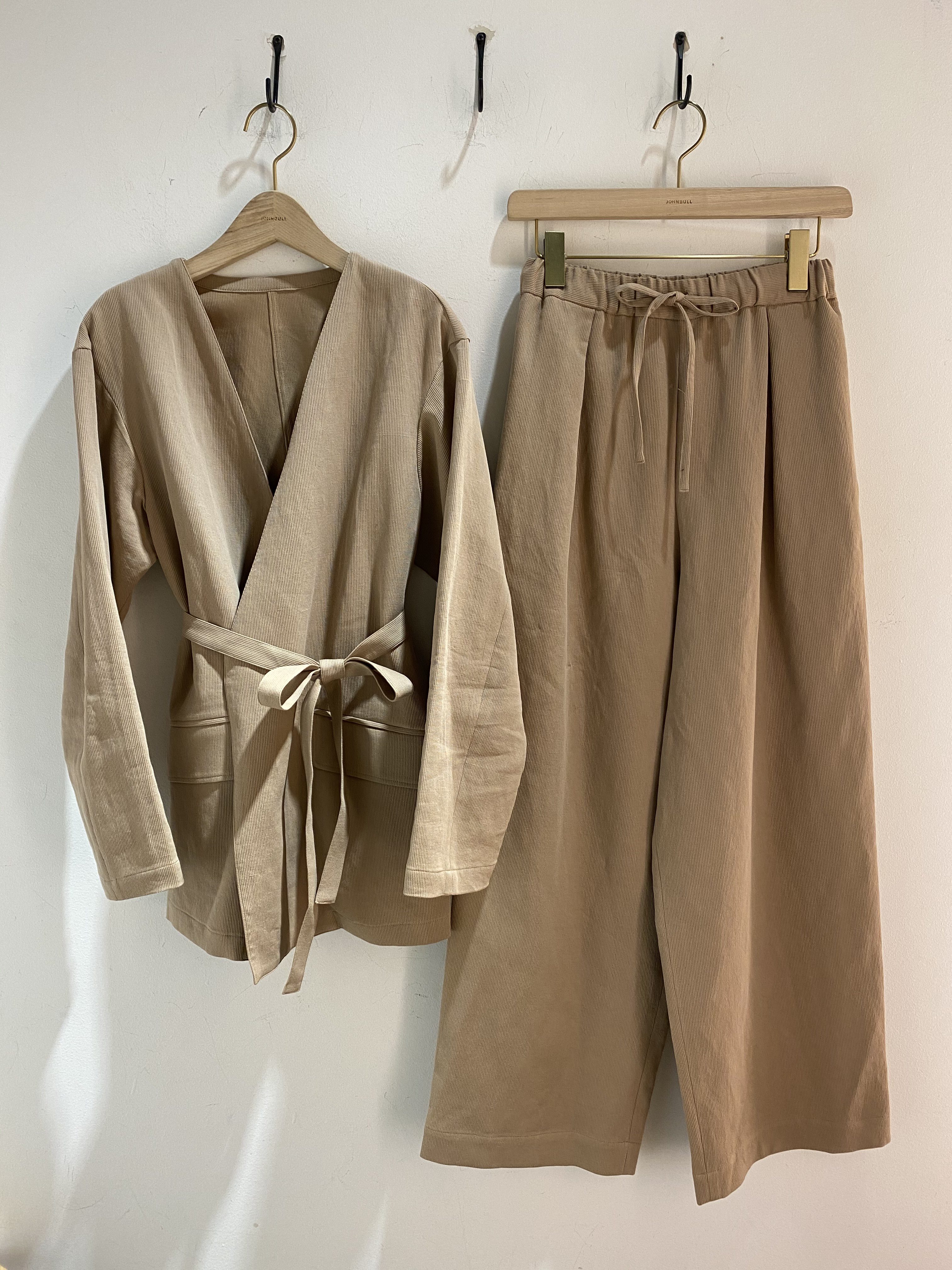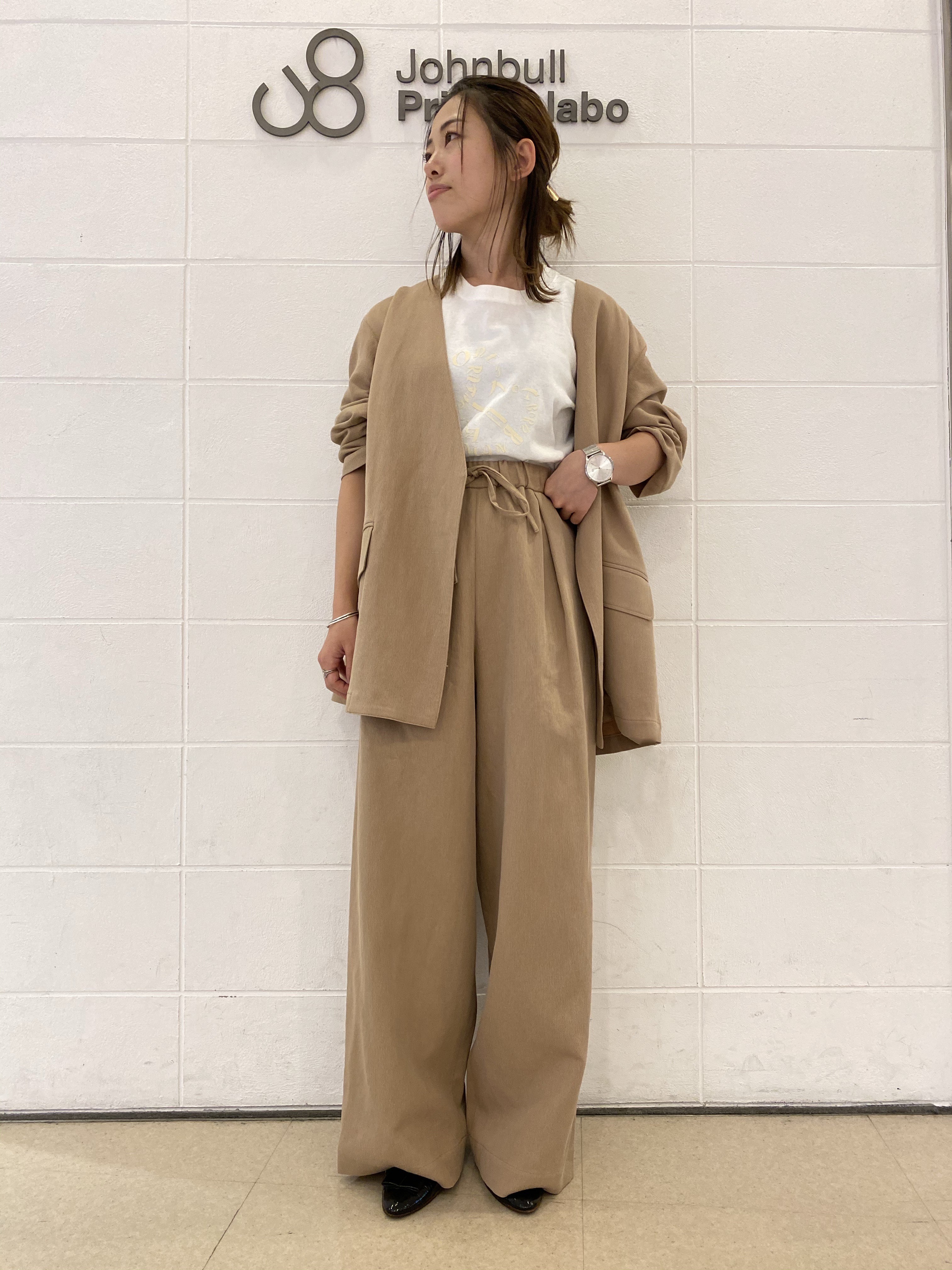 また、セットアップでのご用意はベージュとネイビーの2色となっており、オリーブはパンツのみで展開しております。