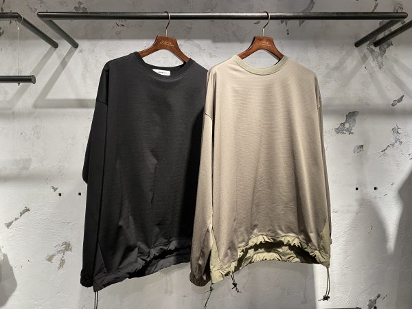 異なる生地を組み合わせたロングスリーブTシャツ。