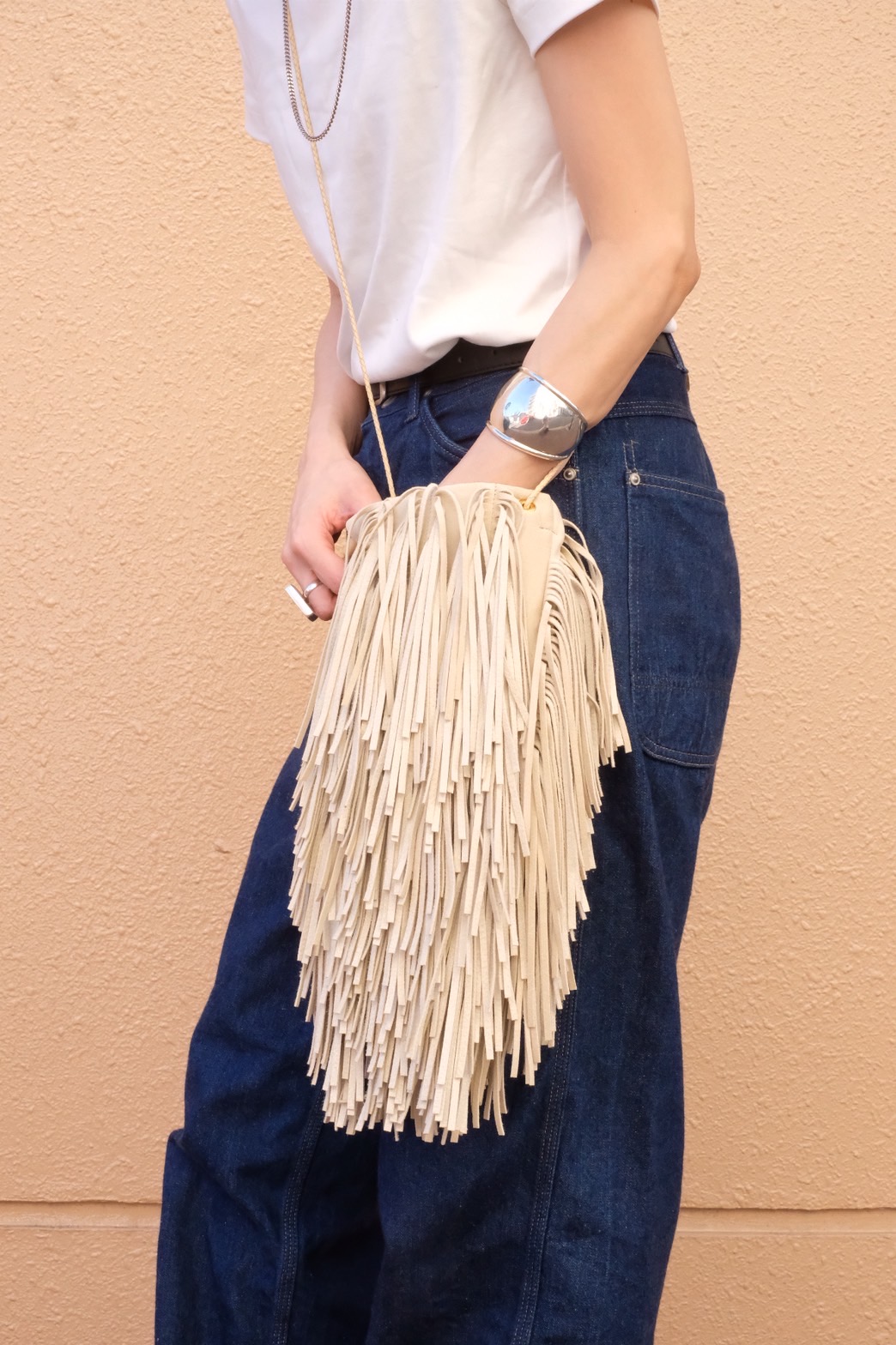 こちらは【MARYALTERNA】の秋の雰囲気を感じられる、フリンジを施したバッグ。