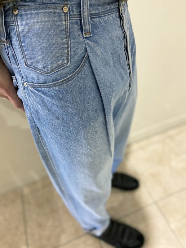 10オンスととても軽い素材で、腰から深めのタックが入っており、緩やかなテーパードラインのため、楽な着心地ながらスッキリと履いて頂けます。