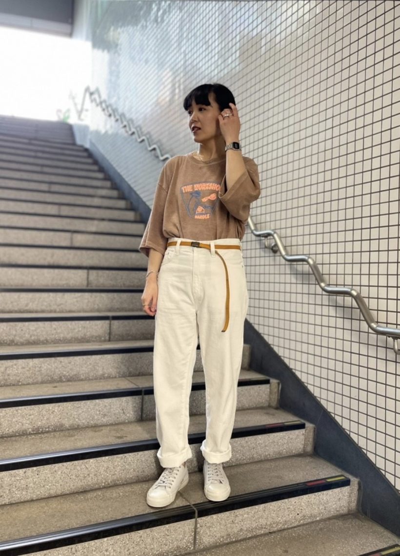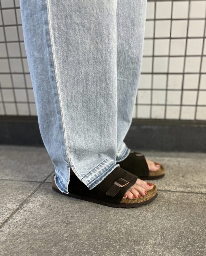裾にはスリットを入れているため、サンダルはもちろん秋に向けて新調されたスニーカーや、パンプスにも相性抜群です◎