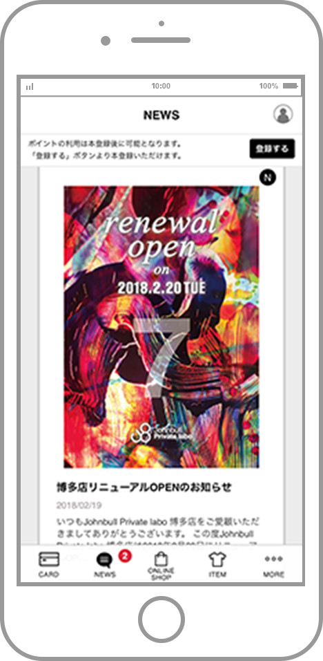 全国の店舗、もしくは公式オンラインストアでのお買い物により、ステージに応じた還元率でポイントが加算されます。