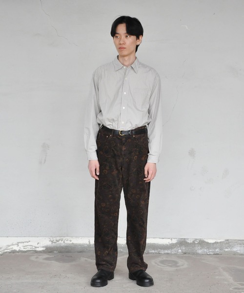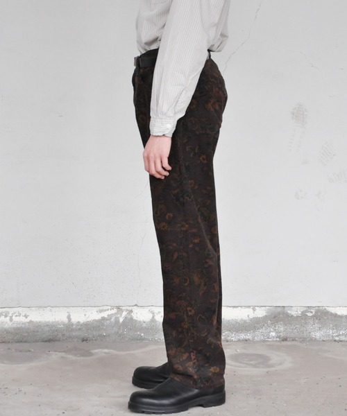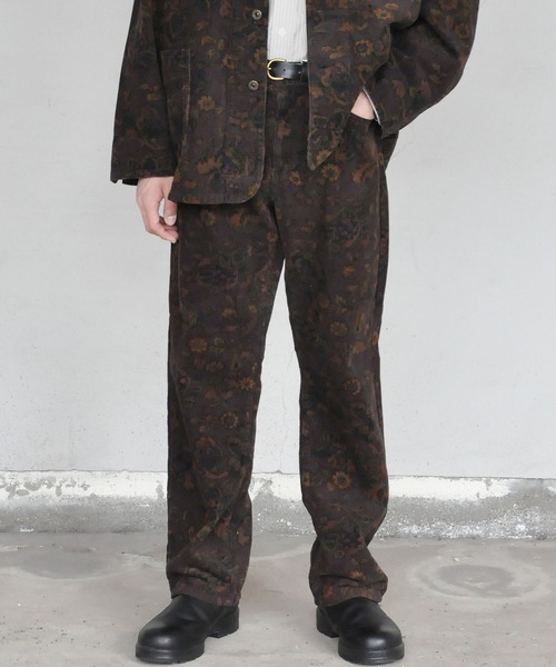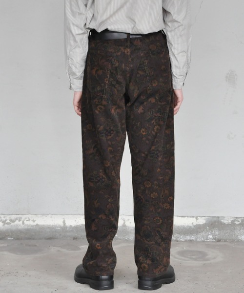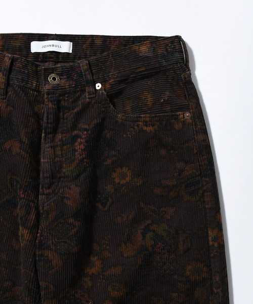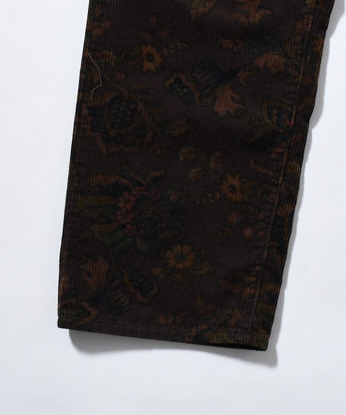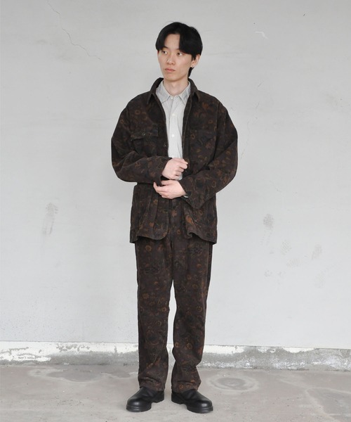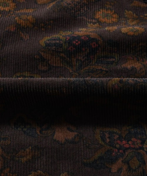 カジュアルな印象のコーデュロイ素材に同色系のボタニカル柄プリントを入れることで、印象的で深みのある雰囲気に仕上げています。