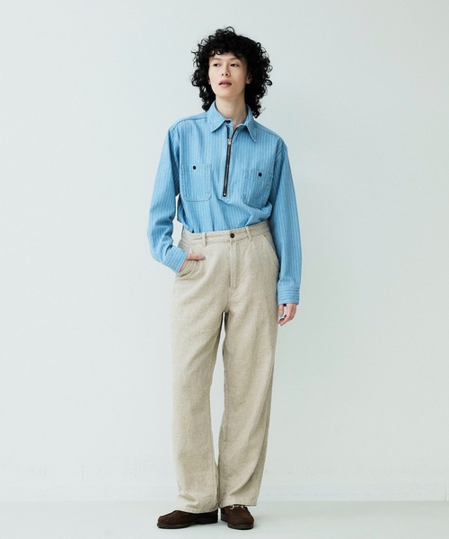 ストンとしたストレートシルエットで、リネン混の風通しの良さと身体に馴染むようなレーヨンの穿き心地が魅力です。