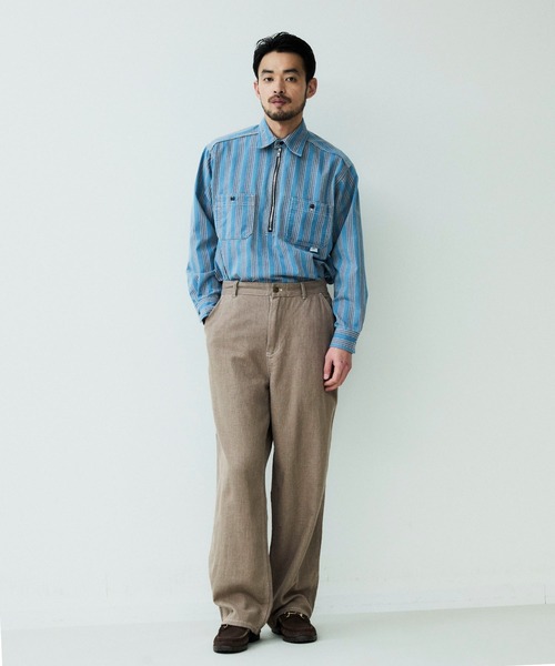 こちらは、あえて重みのあるリネンレーヨンを採用し、WASH加工を施してワークウェアならではの無骨な風合いを再現したカラーです。