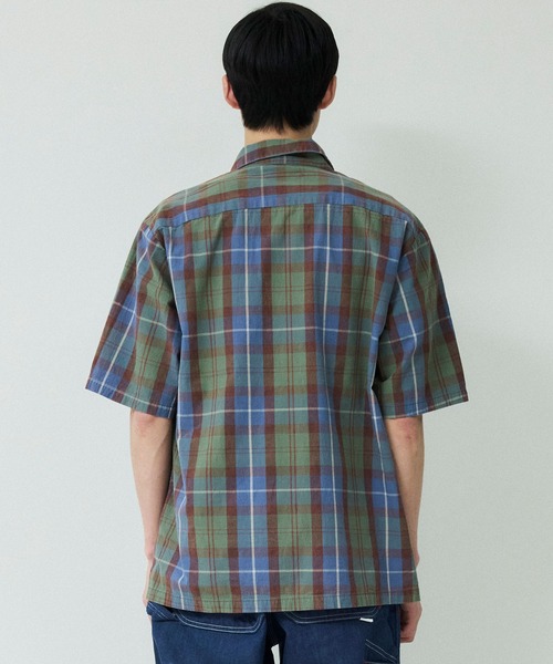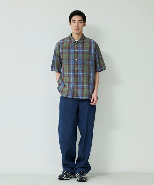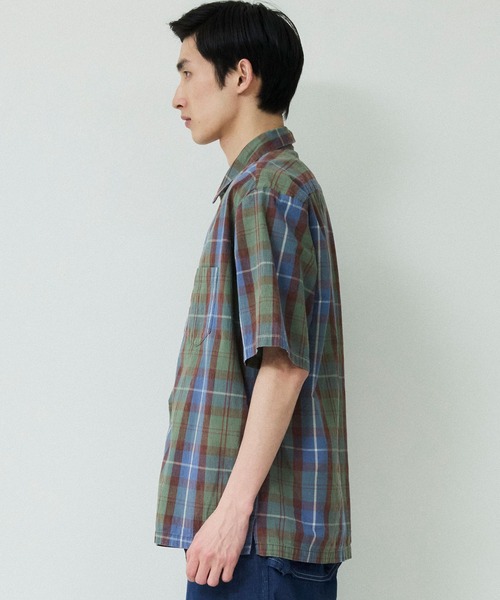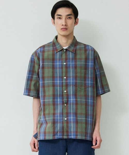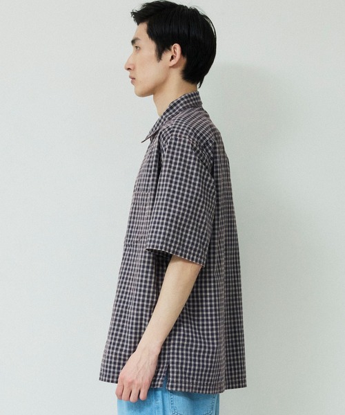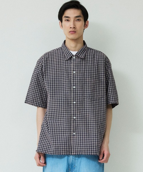 オーガニックチェック柄生地を使用したショートスリーブシャツ。