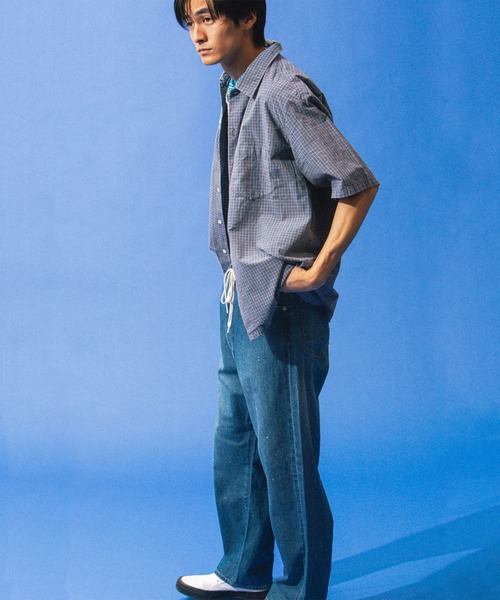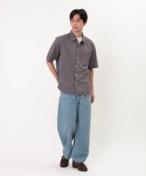 【rebear by Johnbull】パッチワークデニムハーフスリーブシャツ