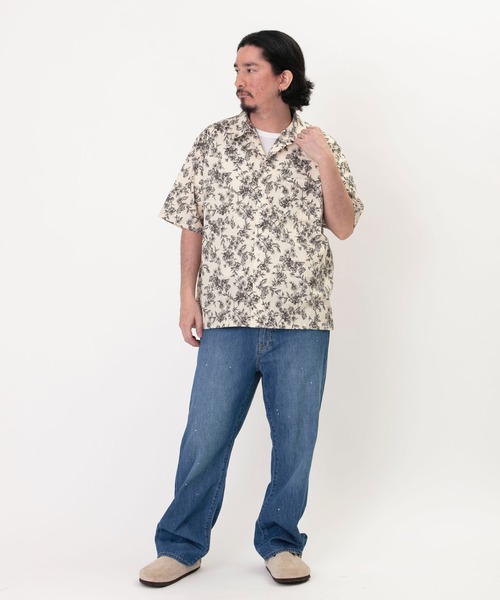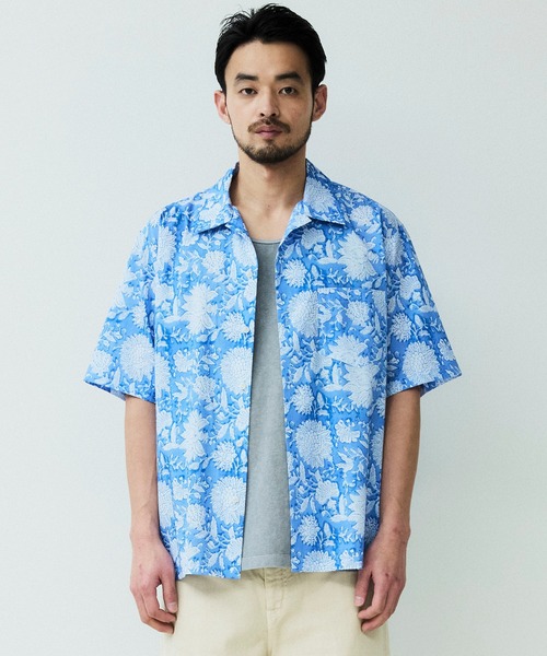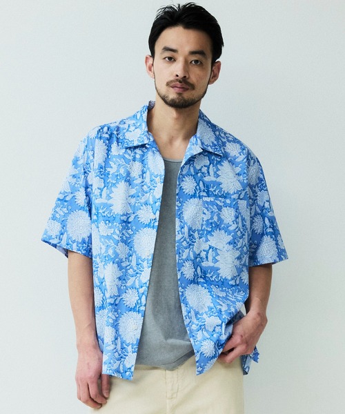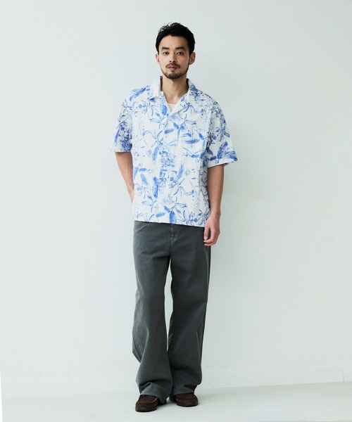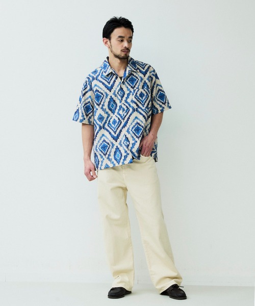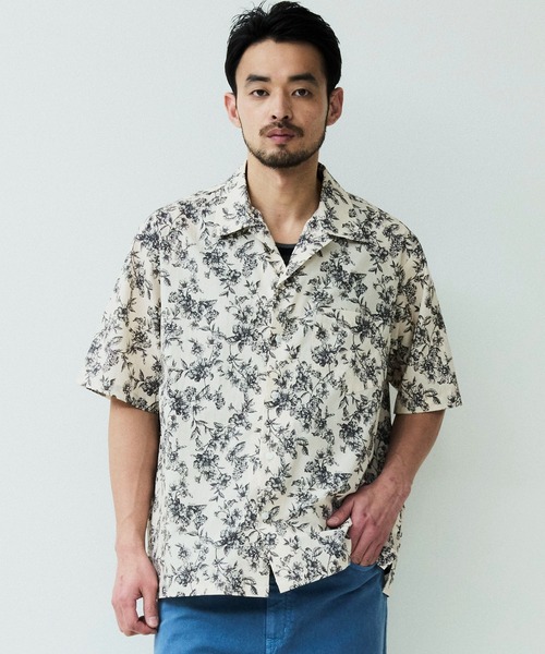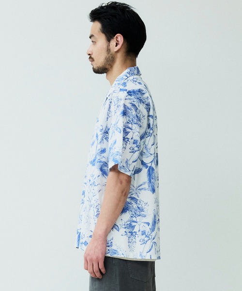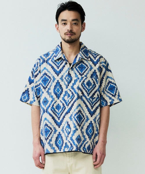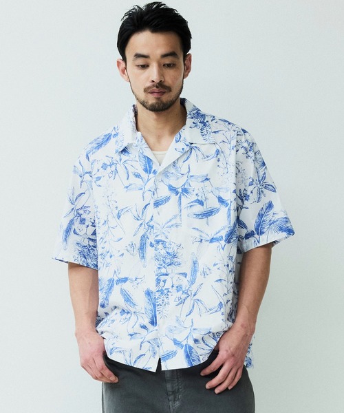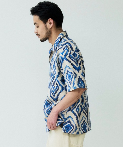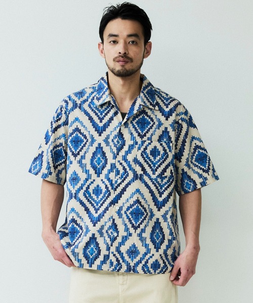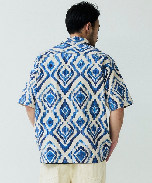 パターンオープンカラーショートスリーブシャツ
