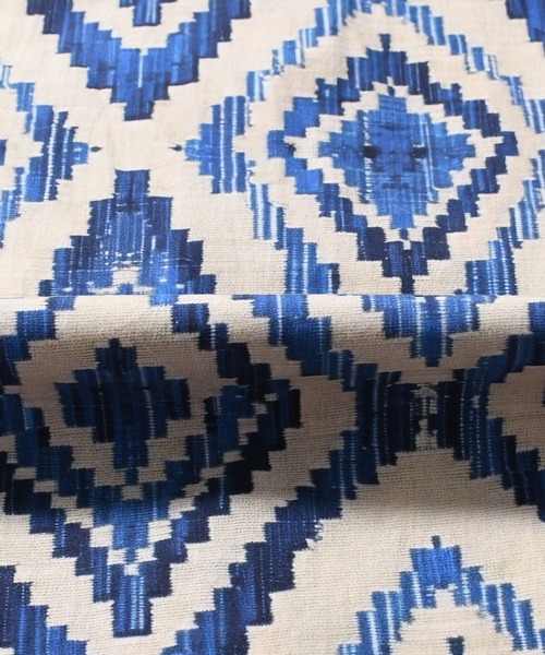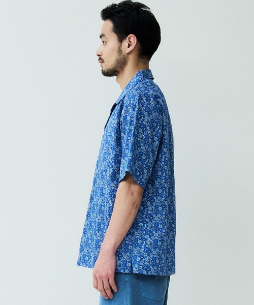様々なプリント柄生地を使用したショートスリーブシャツ。