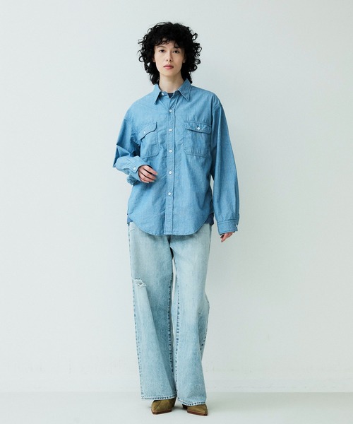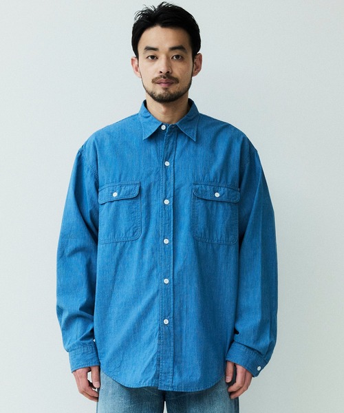 【DENIM DELIGHT DAYS】シャンブレーピンストライプロングスリーブワークシャツ