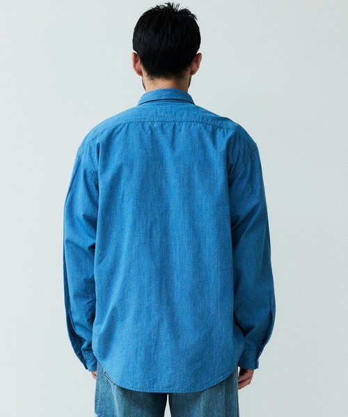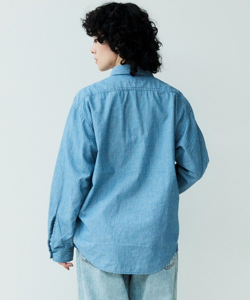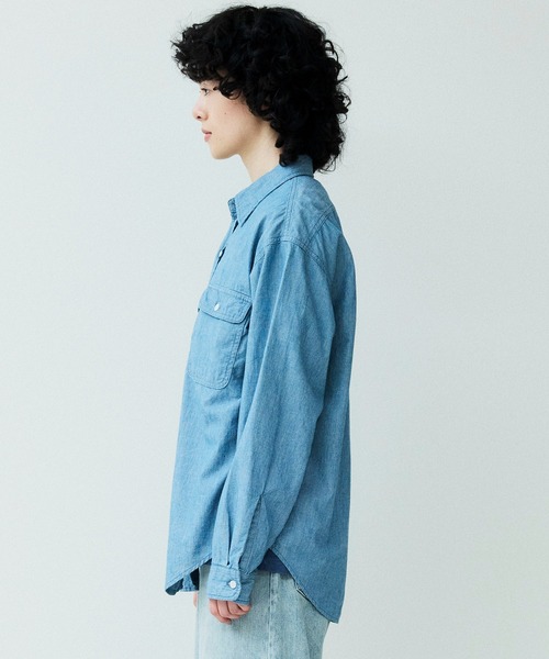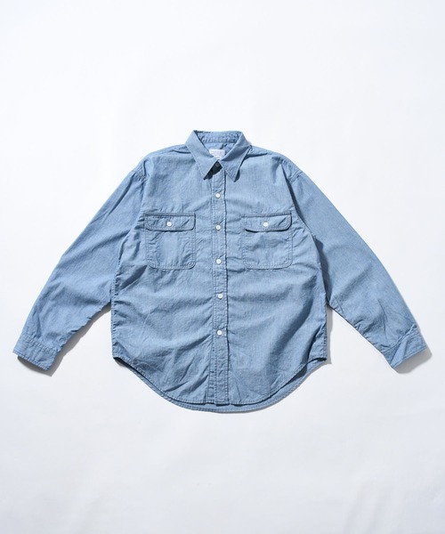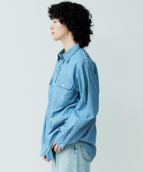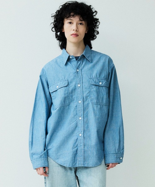 シャンブレー生地を使用したロングスリーブワークシャツ。