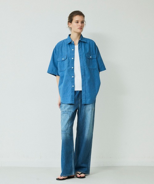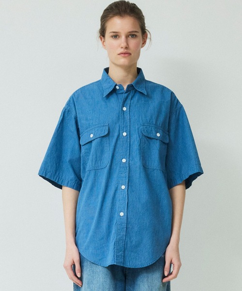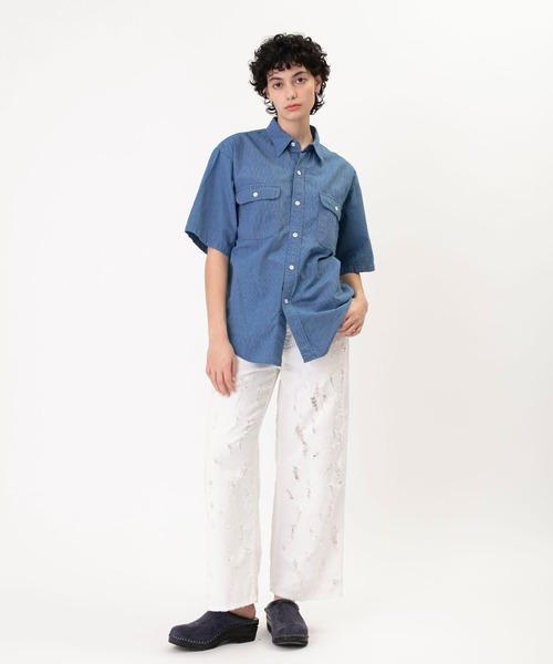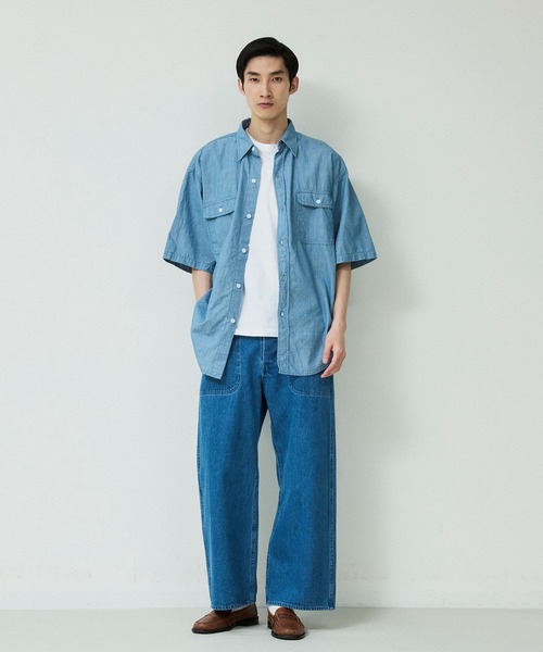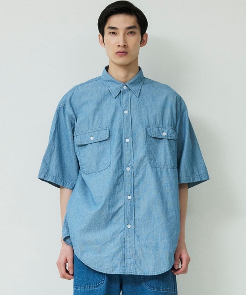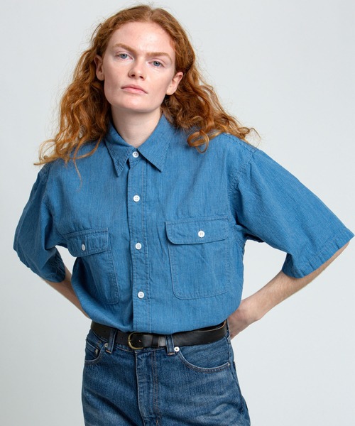 【DENIM DELIGHT DAYS】シャンブレーピンストライプショートスリーブワークシャツ