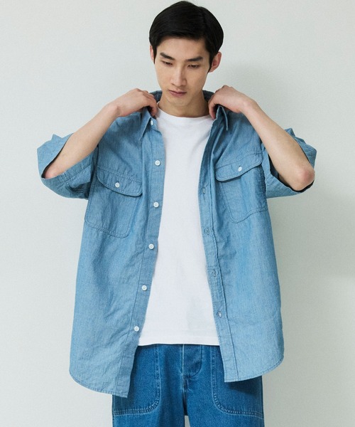 シャンブレーレギュラーカラー半袖シャツ