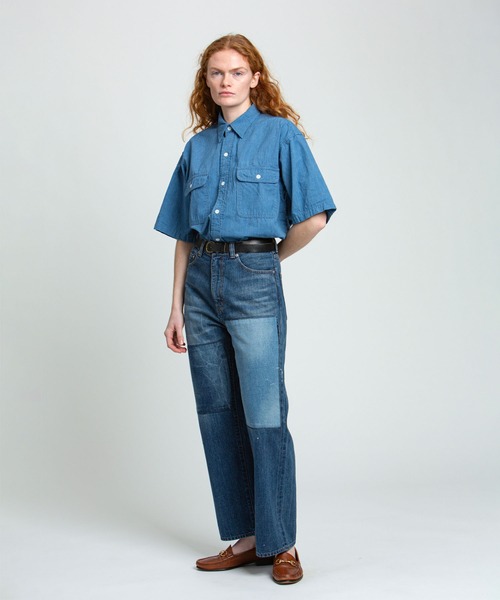 【rebear by Johnbull】パッチワークデニムハーフスリーブシャツ
