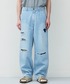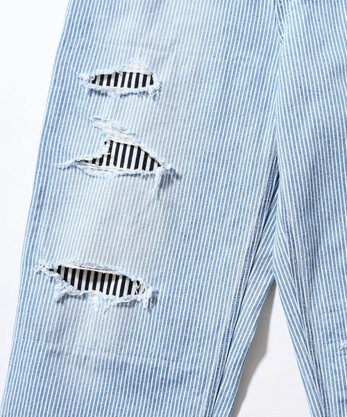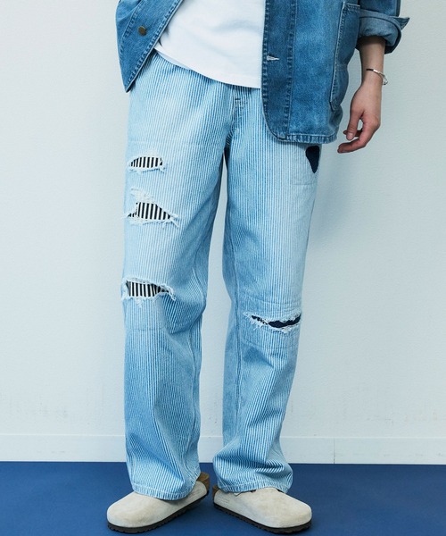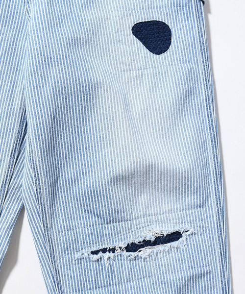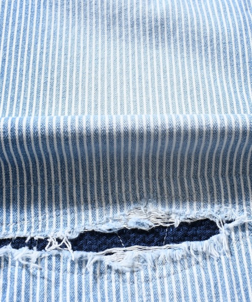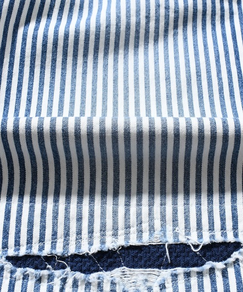 インディゴのヒッコリー素材にユーズド加工を施し、更にクラッシュ、当て布、リメイクを加えたハード加工を施した職人の技術を随所に感じられるアイテムです。