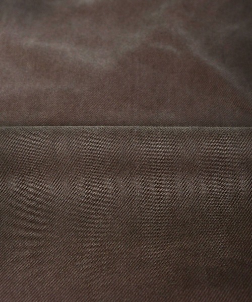 ホワイトカツラギを製品染めし、さらにダメージやエイジング加工を施して洗いこむことで、ワークウェアのようなヴィンテージな雰囲気に仕上げております。