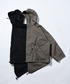 ・フロントのジップの開閉、袖口のボタンの留め位置、裾やウエストコードを調整することで様々なシルエットをお楽しみいただけます