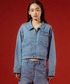 ショート丈のコンパクトなシルエットが特徴で、ボリュームのあるボトムと好相性。女性が着た時に華奢に見えるよう肩の位置やポケットの位置を調整しています。