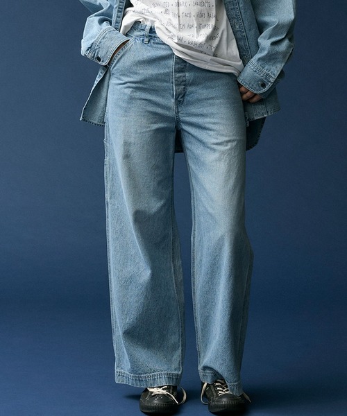 "ゆったりとしたストレートシルエットで生地も柔らかく穿き心地抜群です。穿きこんだような加工感で鮮やかなブルーが特徴的です。rebearの1点もののシャツやジャケットなどと好相性。シャツをタックインしてrebearのジャケットを羽織るスタイリングがおすすめです。タックインするときは、レザーベルトを合わせるとスタイリングが締まるのでぜひ合わせてみてください。"