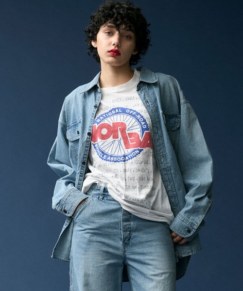 フラップ付きのダブルポケットや、裾のカーブなどワークシャツならではのディティールを活かしたデザインで、女性が着た時に華奢に見えるよう肩の位置やポケットの位置を調整しています。