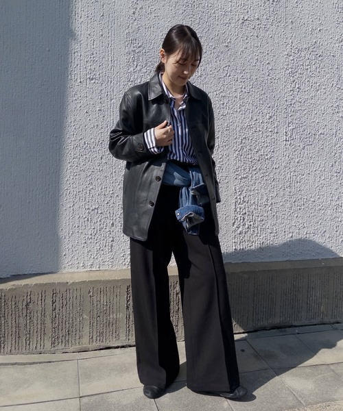 本革のレザーを使用したオーバージャケット。