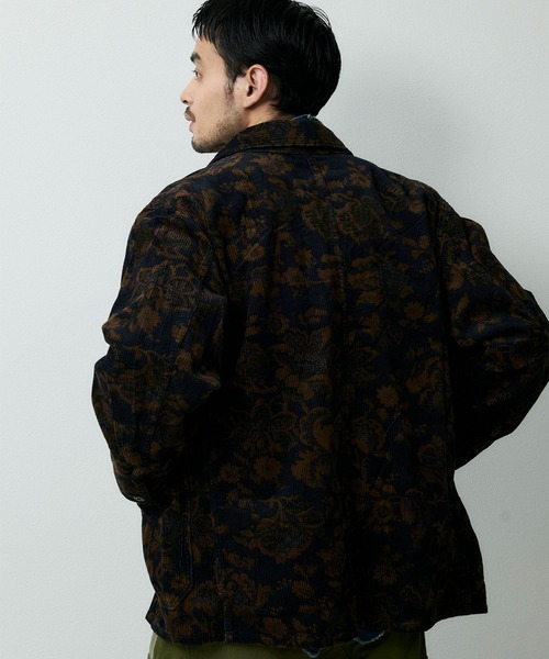カジュアルな印象のコーデュロイ素材に同色系のボタニカル柄プリントを入れることで、印象的で深みのある雰囲気に仕上げています。