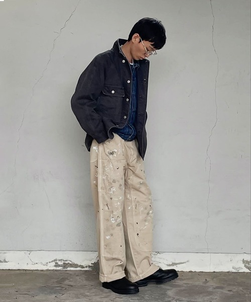 製品染め後、さらにダメージやエイジング加工を施して洗いこむことで、ワークウェアのようなヴィンテージな雰囲気に仕上げております。